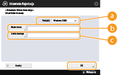 Rejestrowanie katalogu prywatnego i informacji na temat uwierzytelniania dla każdego z użytkownikówJeśli opcja <Metoda ustawiania folderu osobistego> jest ustawiona na <Zapisz dla każdego użytkownika>, dla każdego użytkownika zarejestruj jeden z poniższych folderów jako folder Prywatne. Zarejestrowane ustawienia są takie same i zarejestrowano ten sam folder Prywatne bez względu na miejsce konfiguracji ustawienia.