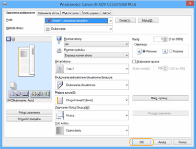 Określ konieczne ustawienia drukowania i naciśnij na [OK].