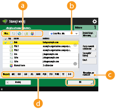 powoduje wyświetlenie odpowiednio odbiorców e-mail, serwera plików i odbiorców grupowych.