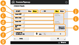 Stałe uwierzytelnienie urządzenia: Gdy używane są <Nazwa użytkownika> i <Hasło> wprowadzone w pozycji <Uwierzyteln. SMTP (SMTP AUTH)>, a ekran uwierzytelniania (<Zaloguj do Serwera SMTP>) nie jest wyświetlany podczas wysyłania