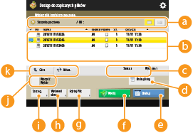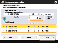 , wyświetla się <Zaznacz wszystko (Maks. 100 dok.)>. Jeżeli wybrano jeden lub większa ilość plików, wyświetla się <Wyczyść Wybór>. Naciśnij na <Zaznacz wszystko (Maks. 100 dok.)>, aby wybrać jednocześnie do 100 plików ze skrzynki lub <Wyczyść Wybór>, aby je odznaczyć.