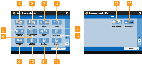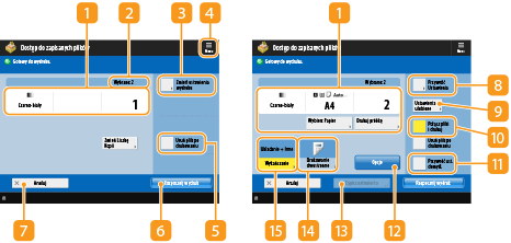 Jeżeli najpierw naciśniesz opcję <Dostęp do zapisanych plików> na ekranie <Strona główna>, a następnie opcję <Skrzynka pocztowa>, <Zaawansowana przestrzeń>, <Sieć> lub <Nośnik Pamięci>, aby rozpocząć drukowanie plików, wyświetlony zostanie poniższy ekran ustawień.