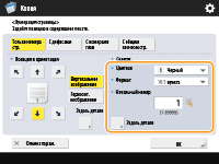 На экране основных функций копирования нажмите кнопку <Параметры>. Экран основных функций копирования