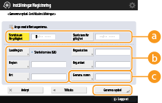 Tryck på <Hanteringsinställningar>  <Enhetshantering>  <Certifikat - inställningar>  <Generera nyckel>  <Generera nyckel för nätverkskommunik.>.