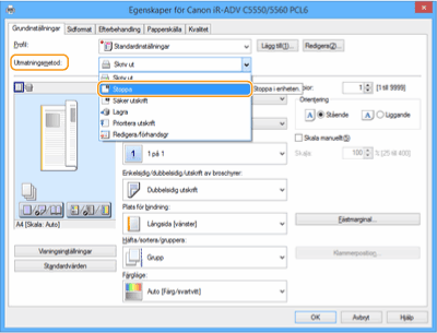 Välj [Hold] vid [Job Processing] i panelen [Special Features].