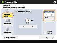 Tryck på <Centrera> eller <Sidor>, och ange varje raderingsbredd.