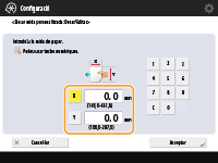 Especifiqueu la longitud del costat <X> i del costat <Y>. Premeu <X> o <Y> per introduir la longitud de cada costat utilitzant les tecles numèriques.