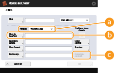 Si establiu <Protocol> en <Windows (SMB)> o <FTP>, en introduir una carpeta que no existeix a <Camí de la carpeta>, la carpeta es crearà automàticament i els fitxers es desaran a dins. No obstant això, es produirà un error d'enviament si introduïu una carpeta amb més d'un nivell.