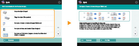 Premeu <Tutorial> per visualitzar una pantalla que us ensenya què podeu fer amb les funcions de l'equip i també consells per utilitzar les funcions de còpia, lectura, etc. Vegeu aquesta pantalla quan vulgueu obtenir més informació sobre quines funcions estan disponibles i com utilitzar-les.