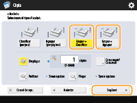 Per grapar a la zona on el paper es doblega pel mig, seleccioneu <Grapar quadern>. Depenent de l'opció, podeu afegir una portada o canviar la posició de plegat. Si retalleu les vores dels fulls impresos, podeu ajustar la posició de retallada.