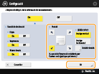 Premeu els botons de fletxa per seleccionar la posició d'impressió. Per ajustar la posició de forma precisa, premeu <Establir detalls> i especifiqueu la ubicació.