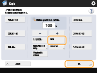 Pokud nastavíte <Auto>, pak musíte velikost papíru vybrat ručně. Nevyberete-li velikost papíru, poměr kopírování se nastaví automaticky podle velikosti papíru uloženého v zásuvce na papír 1.