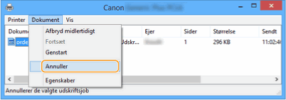 Hvis du ikke kan finde dokumentet, der skal annulleres, er det allerede sendt til maskinen. Er det tilfældet, kan du ikke annullere printningen på computeren.