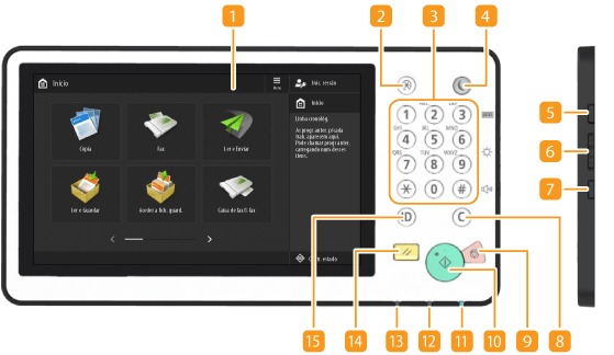 Carregue para colocar a máquina em modo Sleep. A tecla acende-se quando a máquina se encontra em modo Sleep.