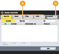 (Monitor stavu) se zobrazí obrazovka <Monitor stavu>. Na této obrazovce můžete zkontrolovat stav tisku a stav vysílání a také zbývající množství toneru a úroveň využití paměti.
