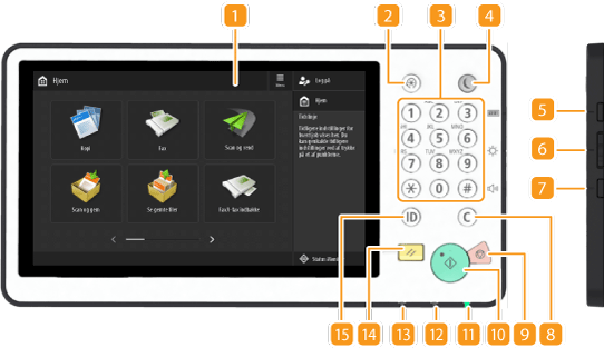 Tryk på denne tast for at logge ind, når personlig godkendelse er nødvendig. Når du er færdig med at bruge maskinen, skal du trykke på denne tast igen for at logge ud.