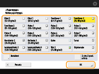 <OK>. Monitoimitason usein käytetyn paperikoon ja -tyypin tallentaminen