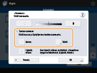 Jos asetat <Aut.>, paperikoko on valittava manuaalisesti. Jos et valitse paperikokoa, kopiosuhde asetetaan automaattisesti vastaamaan paperikasettiin 1 asetun paperin kokoa.