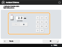 Jos lisävarusteena saatava leikkuri on asennettu, voit leikata vihkojen reunat. Tällä asetuksella voit säätää leikkausleveyttä.