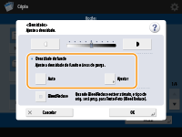 Se <Ativ./desat. selec. auto gaveta p/papel> estiver programado como <Desligado> para uma determinada origem do papel, não pode fazer cópias em papel colocado nessa origem quando <Selecionar papel> está programado para <Auto>. <Ativ./desat. selec. auto gaveta p/papel>