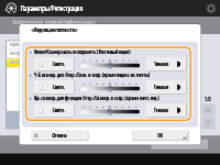 Если значение установлено на стороне <Темная>, области, напечатанные с максимальной плотностью, увеличиваются. Если значение установлено на стороне <Светл.>, закрашенные области, текст и линии могут быть напечатаны как полутона с пропущенными растрами. Данный параметр следует использовать, главным образом, для регулировки промежуточной плотности.