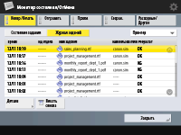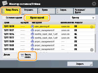 (Параметры/регистрация) <Параметры управления> <Управление устройством> <Ограничить доступ к заданиям других пользователей> установлено значение <Вкл.>, задания не от вошедшего в систему пользователя отображаются как «***» и не могут быть выполнены. При входе в систему с полномочиями администратора отображаются задания всех пользователей. |