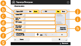 Нажмите кнопку <Вкл.>, чтобы при отправке писем и И-факсов отображался экран ввода имени пользователя и пароля.