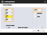 Om du registrerar pappersformat du använder ofta på knapparna <S1> till <S5> kan du hämta dem med ett knapptryck. Registrera papper i fritt format (Eget format)