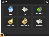 (Inställningar/Registrering) för att visa skärmbilden <Inställningar/Registrering>. Tryck på den här knappen först för att göra förändringar för varje inställning, som t.ex. pappersinställningar, visningsinställningar och nätverksinställningar. På den här skärmbilden kan du också registrera mottagare, som t.ex. e-postadresser och faxnummer.