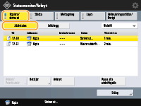 Om du trycker på  (Stopp) på kontrollpanelen när det finns väntande kopieringsjobb, pausas alla kopieringsjobb och meddelandet <<Stopp>Välj det kopieringsjobb du vill avbryta.> visas tillsammans med listan över kopieringsjobb. Du kan välja ett kopieringsjobb i listan och avbryta det genom att trycka på <Avbryt>. Om du vill återuppta kopieringen, tryck på <Forts. kopiering>.