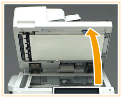 Estireu la palanca superior per obrir la tapa de l'àrea de lectura d'alimentació de documents.