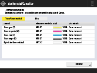 Encara quan es mostra <Canvi necessari> a <Dies restants>, no realitzeu la substitució fins que es mostri un missatge que us indiqui que substituïu els consumibles a l'àrea d'exhibició d'estat (a la part inferior de la pantalla del tauler tàctil).