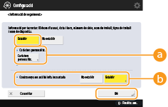Seleccioneu <Establir>, configureu les opcions necessàries i premeu <Bé>.
