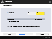 Si no utilitzeu l'autenticació de l'usuari, premeu <Off> per a <Usar autenticació d'usuari>, premeu <Bé> i aneu al pas 5.