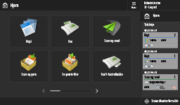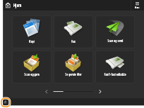 . <Hjem>-skærmen viser en liste over funktionsknapper og fungerer som indgang til forskellige funktioner. Elementer, der vises på <Hjem>-skærmen