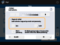 Når skærmbilledet til valg af originalen visesHvis <Vælg papir> er indstillet til <Auto>, vises skærmbilledet til valg af originalens format muligvis. Dette vises, fordi formatet på originalen ikke kan verificeres, og papir ikke kan vælges automatisk, når originaler med høj gennemsigtighed, originaler med ekstrem stærk grundfarve eller små originaler anbringes. Vælg originalformatet eller et format tæt på originalformatet.