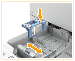 Stel de linkergeleider van papierlade 1 bij en bevestig enveloppenaanvoer B aan de linkergeleider.