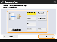 Se programar <Especificar sempre> em <Pré-programações tabuleiro multifunções> para <Papel favorito>, aparece um ecrã que permite selecionar o seu "Papel favorito" quando colocar papel no tabuleiro multifunções. <Pré-programações tabuleiro multifunções>