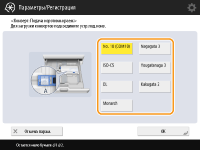 Если кнопкам <S1>–<S5> назначены часто используемые форматы бумаги, то требуемый формат бумаги можно задать одним нажатием соответствующей кнопки. Регистрация бумаги произвольного формата (Бумаги пользовательского формата)