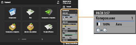 Если для параметра <Управление номерами доступа к адр. книге> установлено значение <Вкл.>, журнал заданий на передачу («Факс» и «Сканировать и отправить») для пользователей, не прошедших аутентификацию, или гостей не отображается в хронологии.