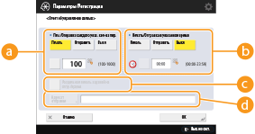 Невозможно настроить параметры печати отчета об управлении связью, если для параметра <Показать журнал заданий> в списке параметров <Параметры управления> установлено значение <Выкл.>. Кроме того, если изменить значение параметра <Показать журнал заданий> в списке параметров <Параметры управления> с <Выкл.> на <Вкл.>, значение параметров печати отчета об управлении связью <Печ./Отправка каждого указ. кол-ва пер.> и <Печать/Отправка в указанное время> автоматически меняется на <Выкл.>.