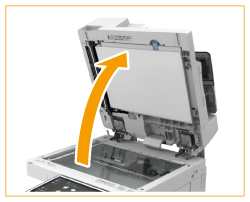 När du placerar tunna A3- eller A4R-original i dokumentmataren, lyft upp originalstopparen för att förhindra att scannade original skrynklas.