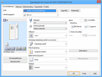 Ange utskriftsinställningarna efter behov och klicka på [OK].