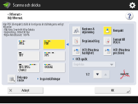Registrera vanliga inställningarDu kan kombinera ofta använda mottagare och scanningsinställningar och lagra dem i en knapp, för att kunna använda kombinationen senare. Genom att trycka på den registrerade knappen när du scannar original, kan du snabbt ange önskade inställningar. Registrera en kombination av vanliga utskriftsinställningar