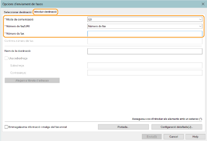 [* Número de fax/URI]: Assegureu-vos que [Número de fax] estigui seleccionat.