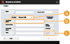 Při hledání místa určení na serveru LDAP z ovládacího panelu stroje můžete zadat čtyři podmínky hledání. Pokud ale hledáte místa určení na serveru LDAP z Remote UI (Vzdálené uživatelské rozhraní), můžete zadat pouze jednu podmínku hledání.