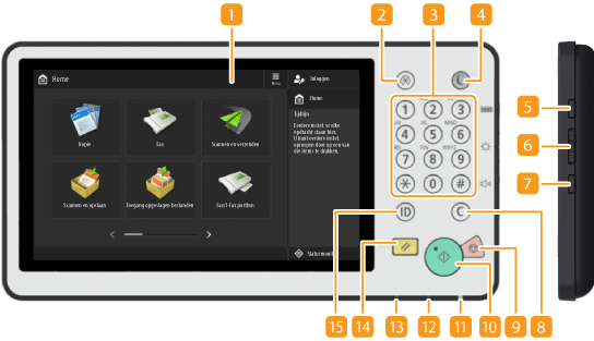 Druk op deze toets om in te loggen wanneer persoonlijke verificatie nodig is. Als u klaar bent met het gebruik van deze machine, drukt u weer op deze toets om uit te loggen.