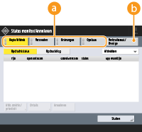 (Statusmonitor) drukt, wordt het scherm <Statusmonitor> weergegeven. Op dit scherm kunt u de afdruk- en verzendstatus controleren, evenals de resterende hoeveelheid toner en geheugen.