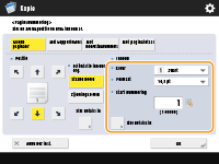 Als u <Instellingen Kopiesetnummering optie> instelt op <Aan>, worden de instellingen die u kunt opgeven, als volgt gewijzigd. <Instellingen Kopiesetnummering optie>