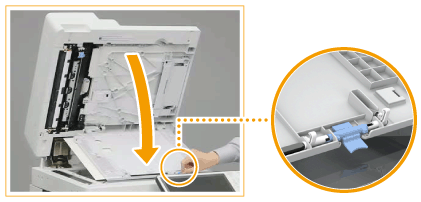 Sluit de klep van het scangebied van de documentaanvoer tot deze op zijn plaats klikt.
